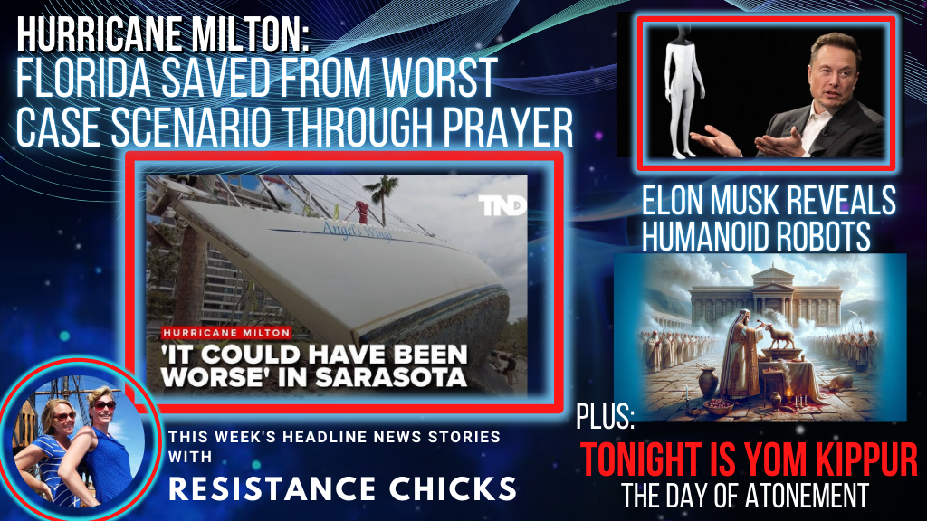 Weekly News Report! Florida Survives Hurricane Milton Through Prayer! Your prayers worked! Prayers work! Milton hit landfall as a Cat 3 instead of a devastating Cat 5 hurricane. Milton still caused massive damage but it appears the worst-case scenarios did not manifest. Updates from the recovery and rescue efforts that continue in North Carolina & Tennessee mountains. The holiest day on the Jewish calendar—Yom Kippur, otherwise known as The Day of Atonement, is tonight. We dive into the spiritual significance of this holy day. Kamala’s “I was raised middle class” answer to every economic question is falling flat. Elon Musk reveals humanoid Robots. All of that & more in This Week’s Headline News!