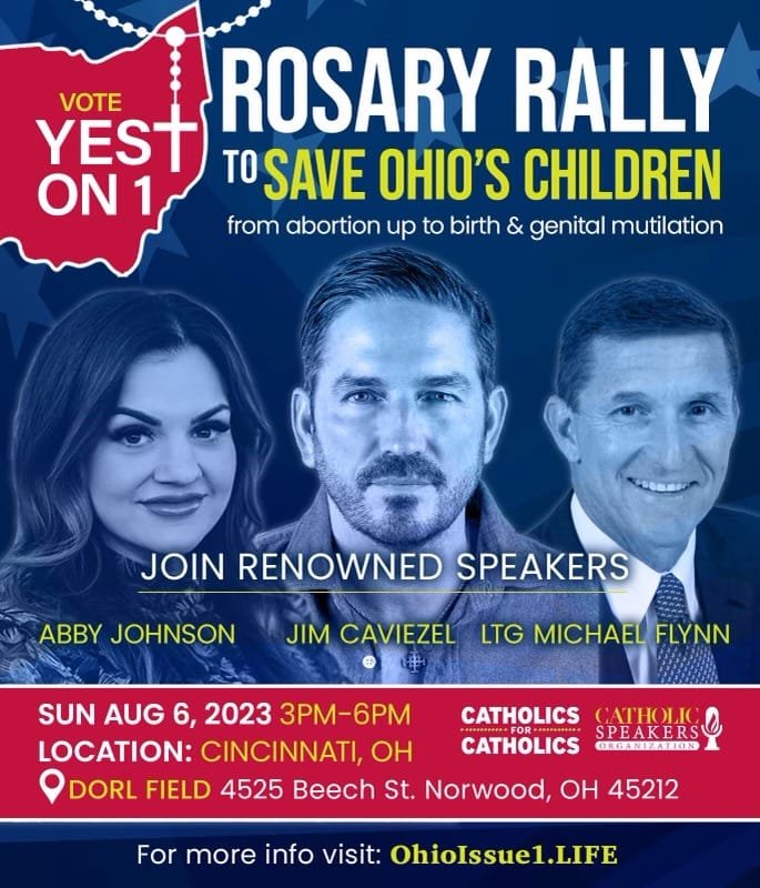 John Yep from Catholics For Catholics, joined Resistance Chicks to discuss the upcoming Rosary Rally to Save Ohio’s Children in Cincinnati that will feature Pro-Life speaker Abby Johnson, General Micheal Flynn, and Sound of Freedom’s Jim Caviezel. The organization that brought you the Dodger Stadium Rally is coming to help pray for Ohio to make the right decision on August 8th and vote YES on Issue 1 to help save Ohio’s children from the radical left’s agenda. Please join us Sunday August 6th from 3-6 pm. Dorl Field 4525 Beech St, Norwood, OH 45212