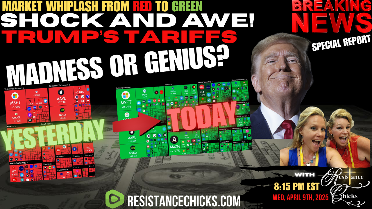 Special News Report! Even those who didn’t have money in the stock market watched with jaws agape as the markets tumbled drastically, with no end in sight, since Trump’s tariff announcement on April 2nd. Economists begged Trump to pull back as they watched portfolios draining like a balloon with a hole in it. Then, suddenly, like a bad dream, it was over; today, April 9th, will go down in history as the most traded stock market day in history. Trump announced he was keeping tariffs on all countries at 10% that did not retaliate. So what do we make of all of this turmoil and chaos? Is it over? What does it mean? What will happen with China, the lone country to still engage the US in an epic trade war? If anyone tells you they know for certain, they are lying. Tonight, we’ll break down what we know so far with a good, educated guess on what in the “wide, wide world of tariffs” is going on here. Will Main Street beat out Wall Street… that has yet to be seen.