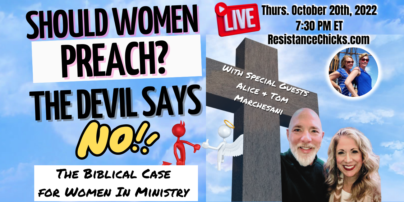 Our special guest for this topic, Alice Marchesani put it best this way: The root of this is doctrinal error is satanic for all of creation should sing God’s praises and preach His Words from the rising of the sun to the setting of the same. In the book of Acts that the Spirit fell on men AND women and ALL were prophesying? Paul the Apostle sent Phoebe, a woman, to deliver his letter to Christians in Rome. Whoever delivered a letter from Paul stayed with that body of believers to ANSWER QUESTIONS they might have about Paul’s letter. Phoebe was THAT PERSON. She wasn’t in the kitchen or teaching children’s church or cleaning toilets. She was in front of men and women, answering questions they might have had. In Romans 15, Paul calls Junia an “apostle of apostles”. The ESV version changed Junia to Junias because male translators couldn’t handle the fact that Junia was a woman so they deceptively came up with Junias. Consequently there is no male version of the name Junia. Satan hated Eve from the very beginning. He saw her as the source of more people having dominion over him and hatched a plan to take her and all of humanity down. Jesus thwarted that plan. So now, Satan has sought to infiltrate the body and come up with another evil strategy to eliminate the threat of millions of Spirit filled believers proclaiming the Gospel of Jesus Chris: