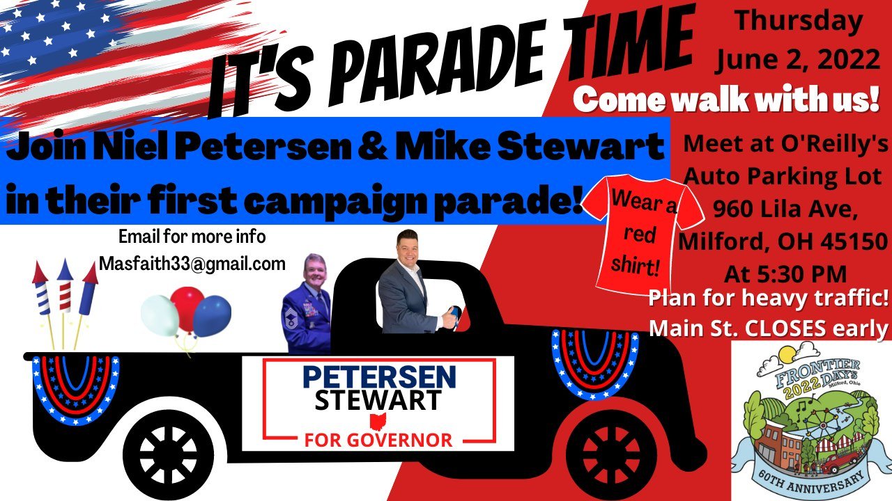 Marching with The ONLY CONSTITUTIONAL CONSERVATIVE in Ohio’s Governor race, Niel Petersen at the Frontier’s Day in Milford, OH!