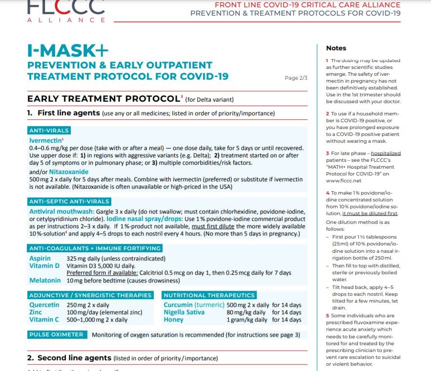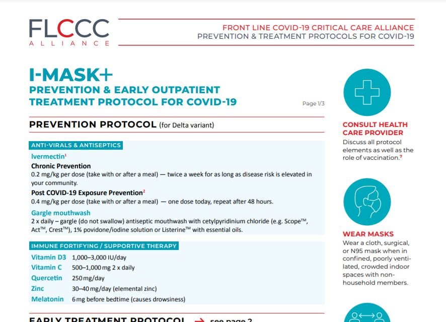 FLCCC I-MASK Latest Protocol… This is updated from their latest experience treating patients- everyone should visit this site to see just what exactly these doctors on the frontlines are using to treat their patients and also to let other doctors know how to treat theirs. CLICK HERE